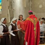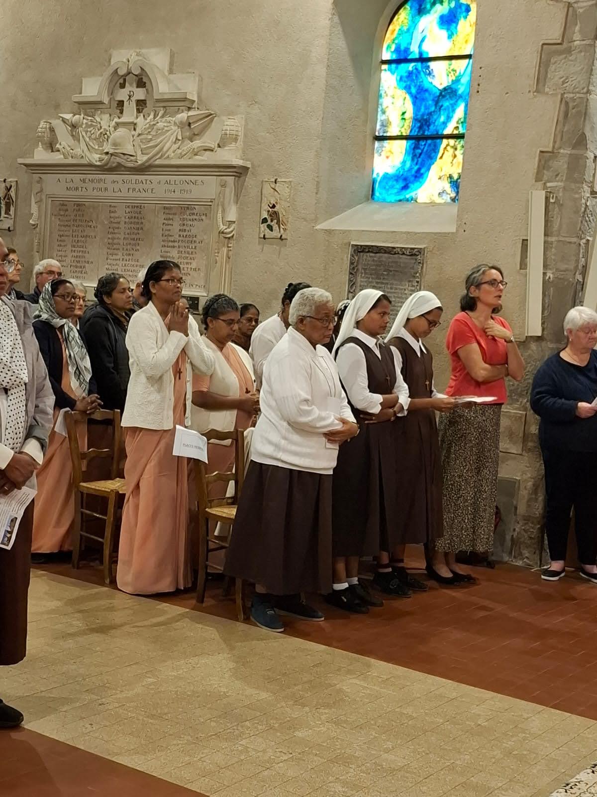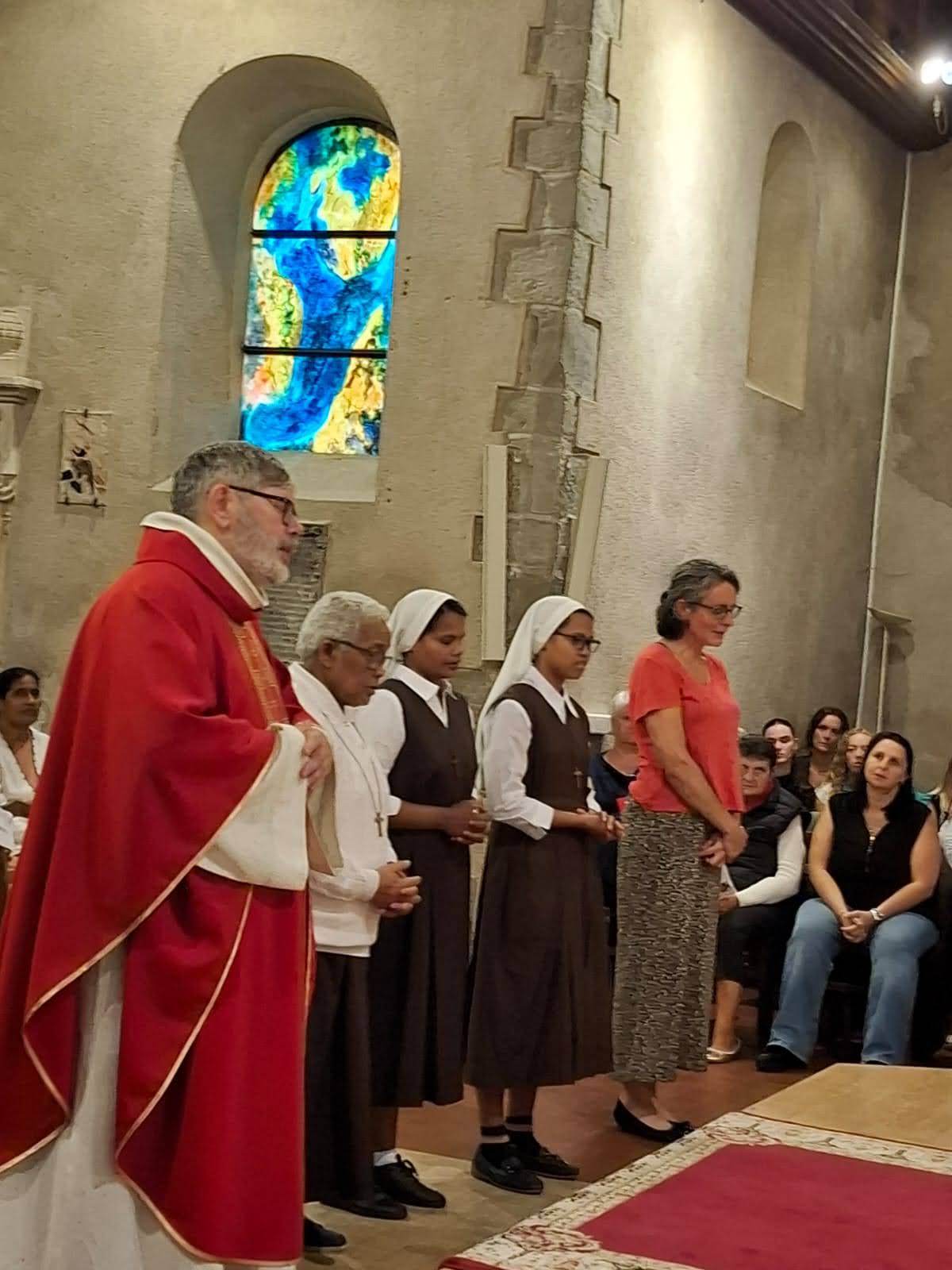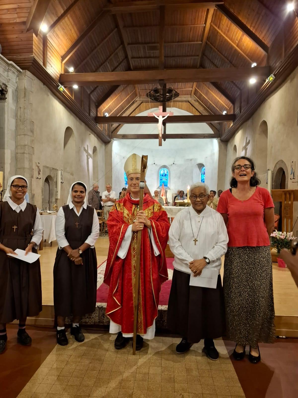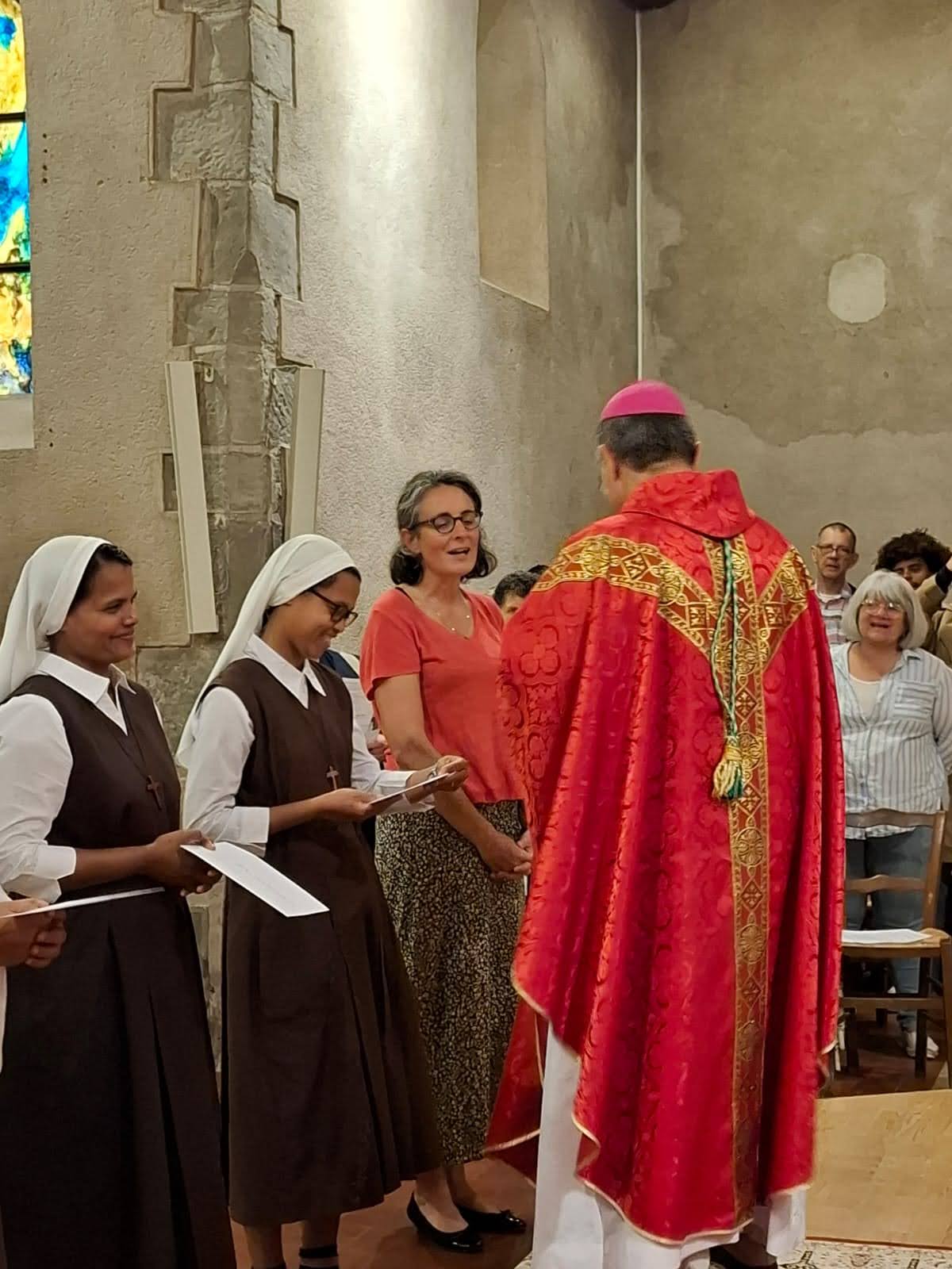 Le 13 septembre 2025, Mgr Vuillemin est venu accueillir les sœurs et Marie Jauffret qui ont reçu par des lettres de missions la charge de l’animation des deux paroisses. Comme le prévoit le code du droit canon :