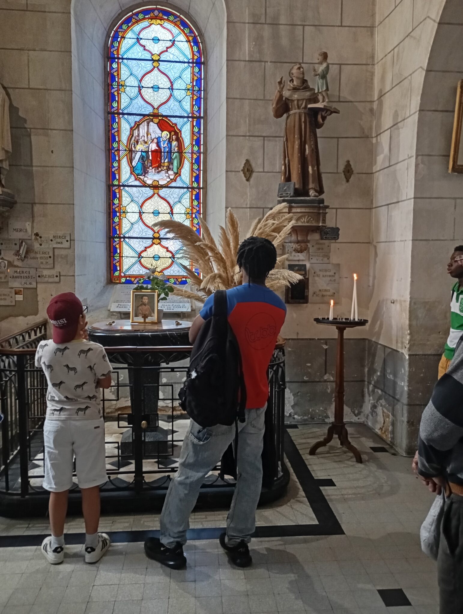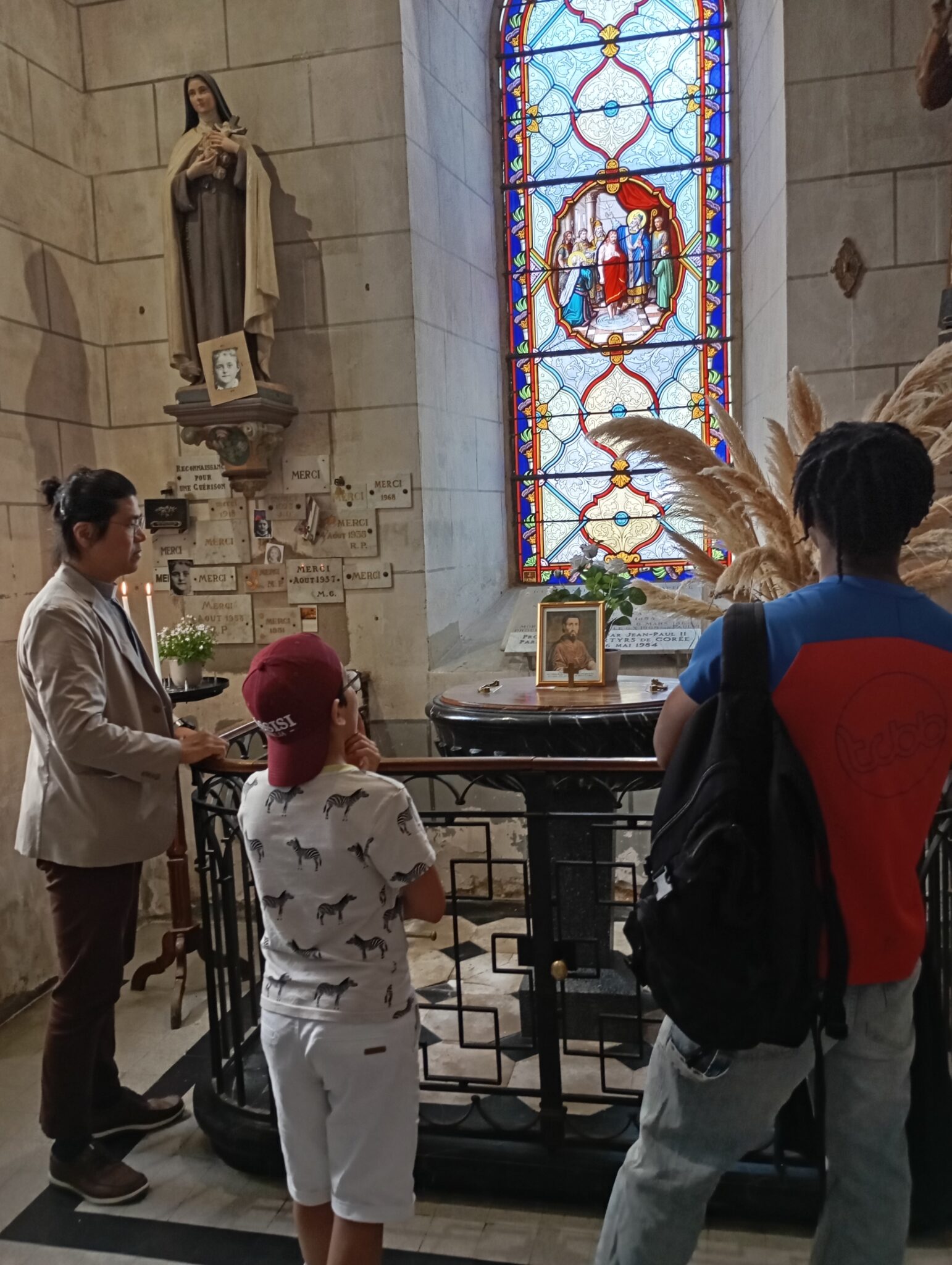 Nous sommes ensuite allés visiter l’église , sa maison natale. Nous avons vu le baptistère, ainsi nous avons prier avec et pour lui.